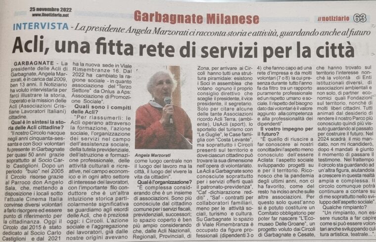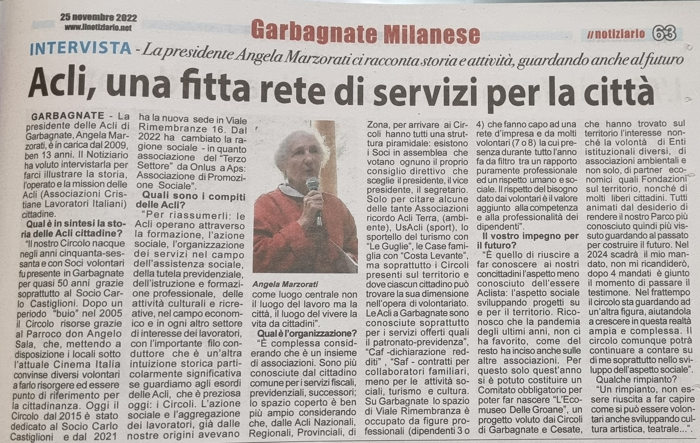 La storia, come operano e i compiti delle Acli sono i temi affrontati nella recente Intervista pubblicata nell’ultimo numero del Notiziario a Angela Marzorati presidente del Circolo.