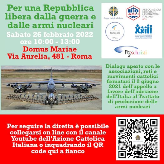 Per questo come Acli ci appelliamo al Governo italiano e all’Unione europea perché sappiano trovare una via di mediazione, e in questa prospettiva, con altre associazioni cattoliche, abbiamo promosso il convegno “Per una Repubblica libera da guerra e armi nucleari” che si terrà sabato 26 febbraio a Roma.
